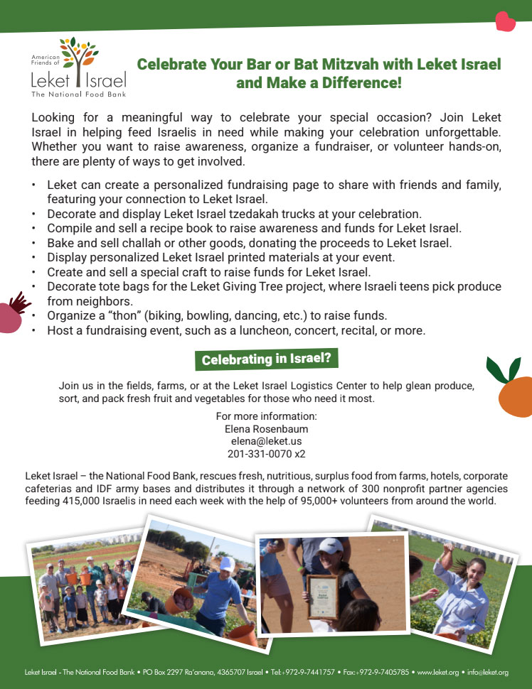 • A Leket Israel Bar or Bat Mitzvah t-shirt
